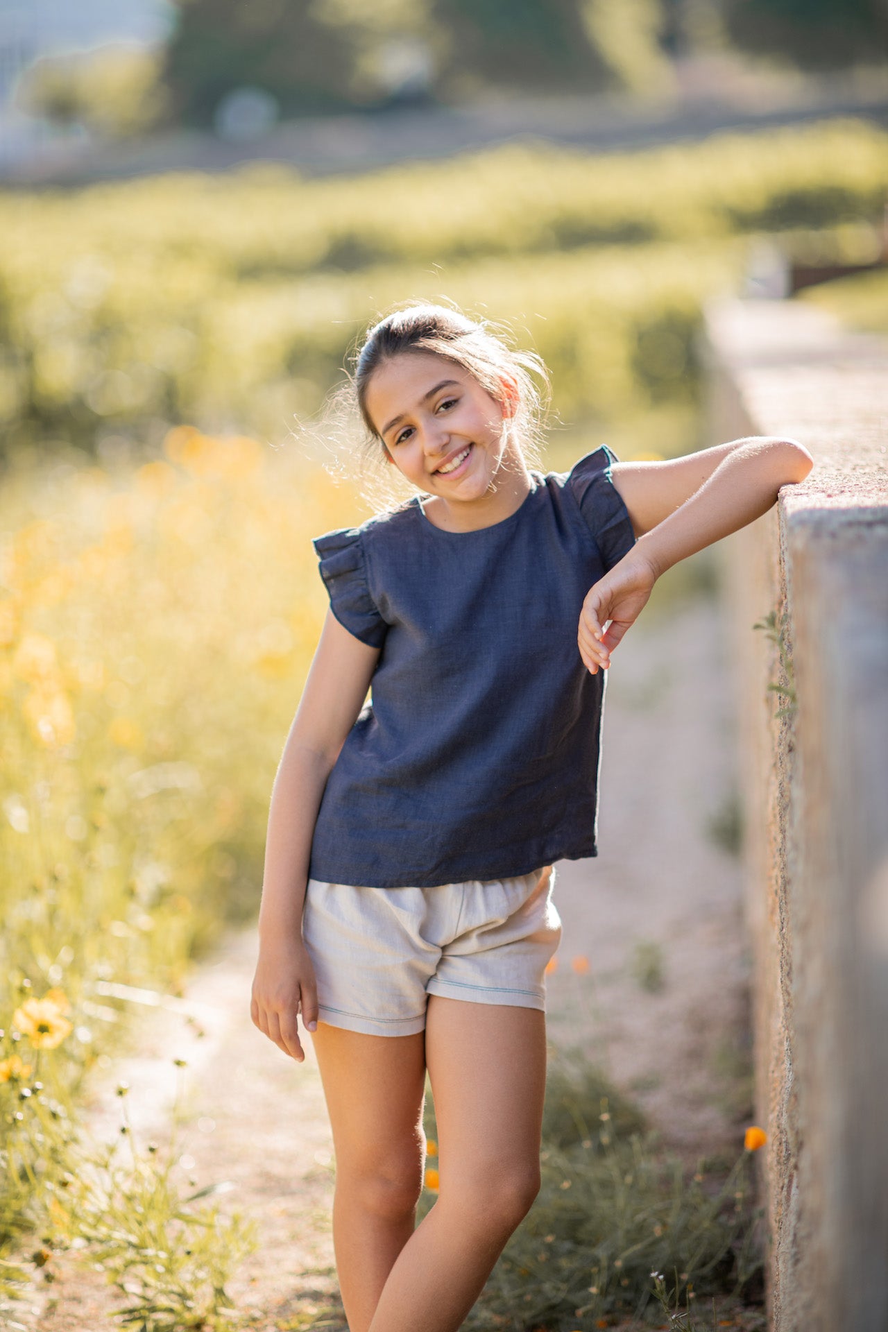 Elasticised waist decorated with frills. A lovely piece for all occasions.