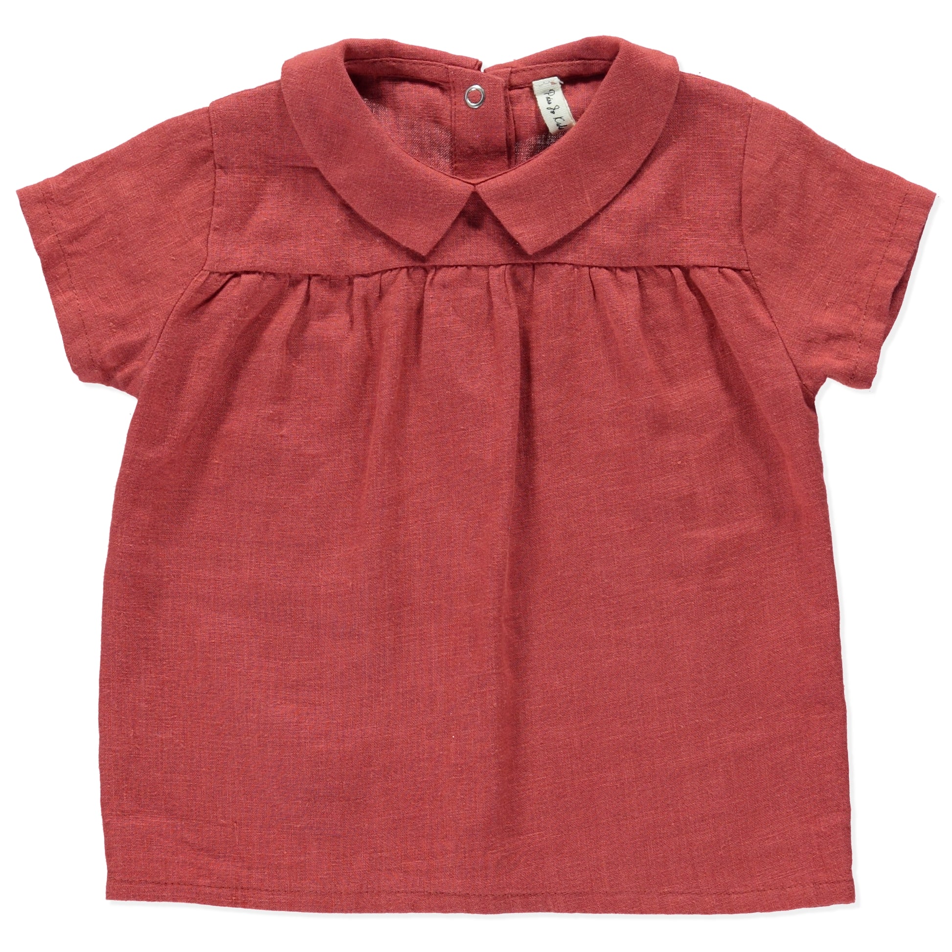 A lovely casual shirt with short sleeves, round collar, snaps closure on the back.